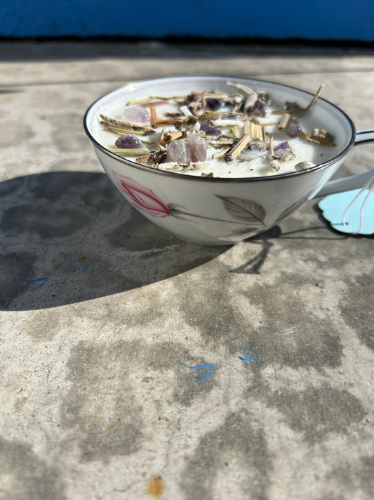 Clear Decisions Tea Cup Crystal Candle