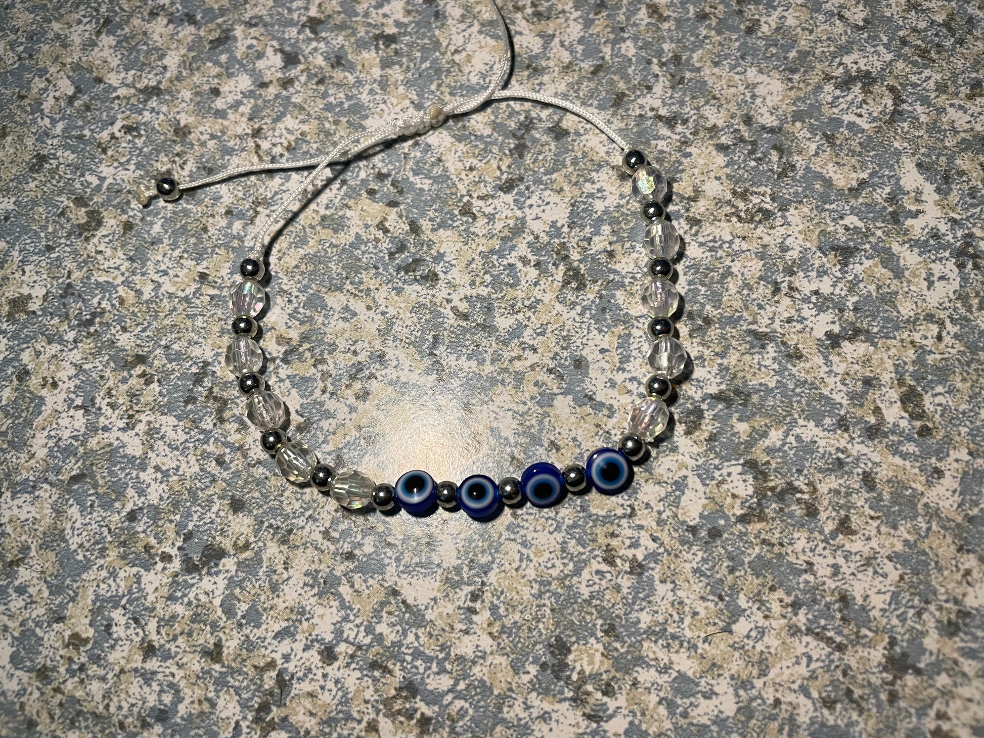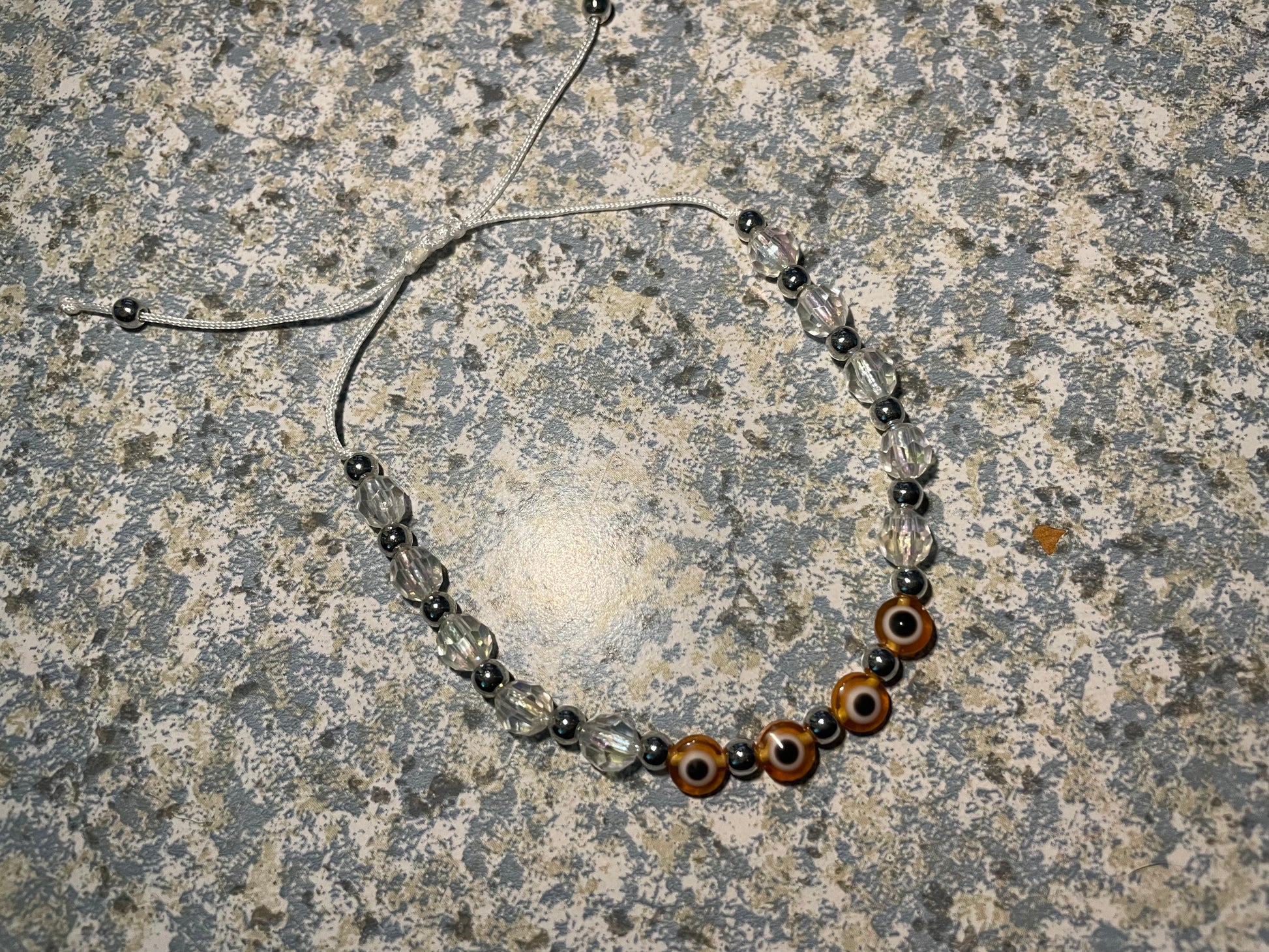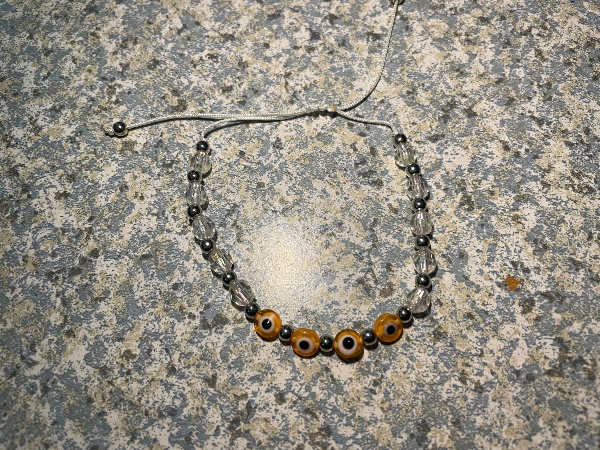 Ur choice of evil eye on an adjustable beaded bracelet made by hand. Cleansed and ready for you.