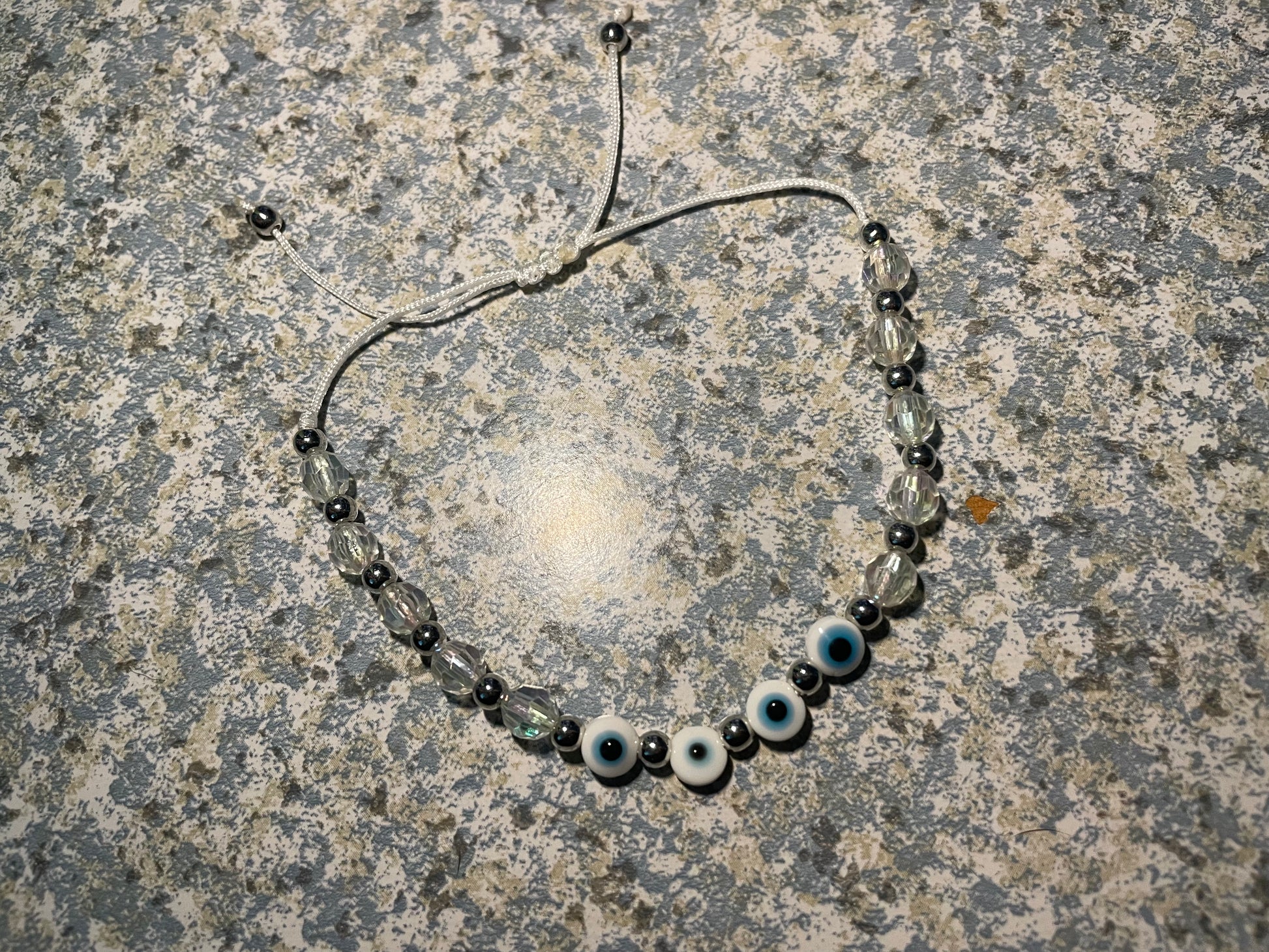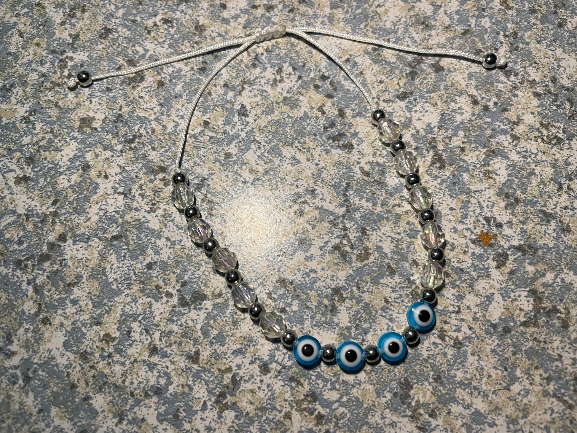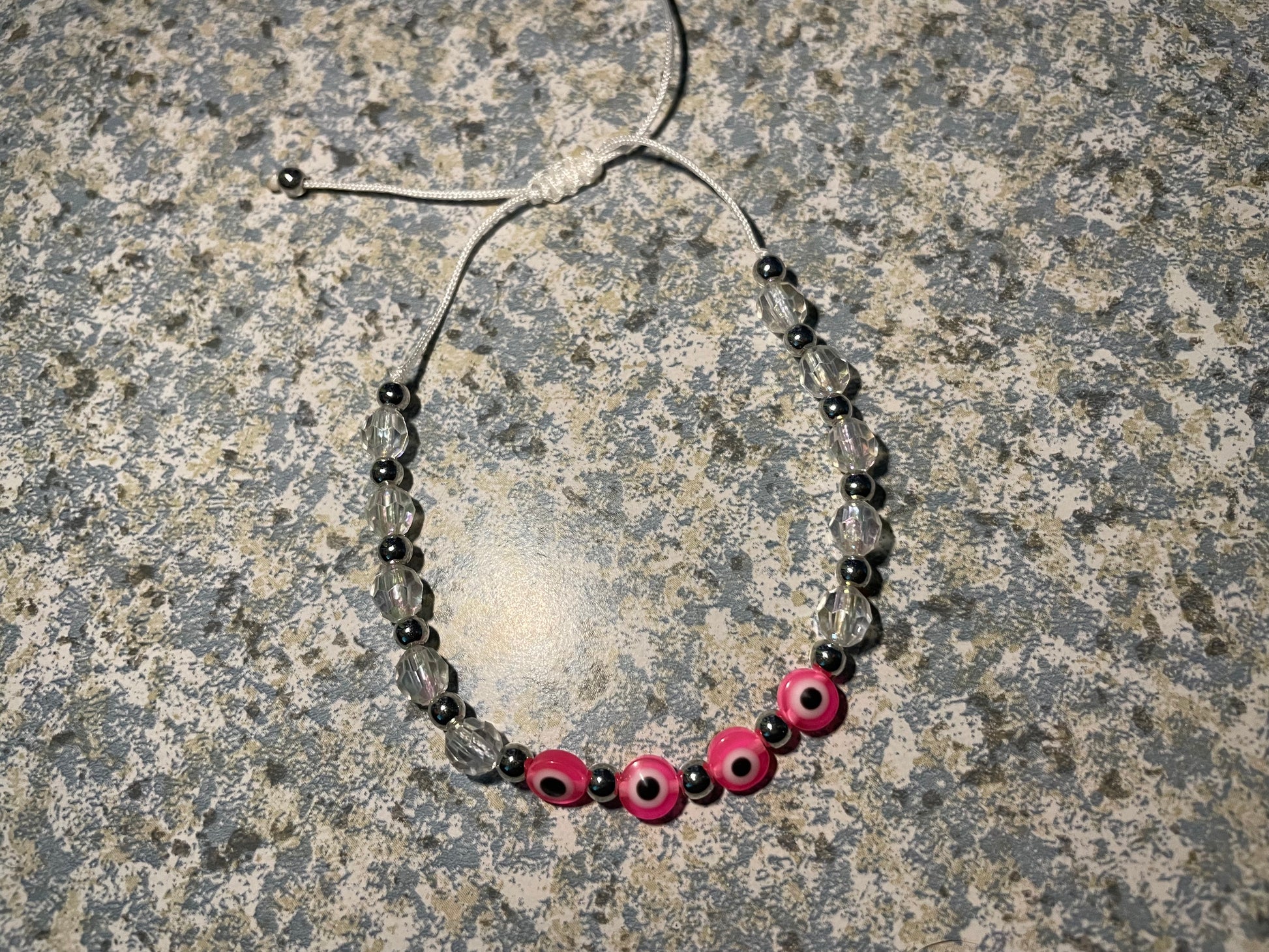 Ur choice of evil eye on an adjustable beaded bracelet made by hand. Cleansed and ready for you.